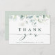 This thank you card features painted watercolor eucalyptus, botanical green, and light blue leaves with modern calligraphy. Perfect for weddings, birthdays, graduations, and other events.