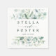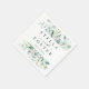 This wedding napkin features painted watercolor eucalyptus, botanical green, and light blue leaves.