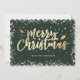 Elegant Green Gold Calligraphy Merry Christmas Holiday Card