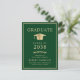 Elegant green college graduation party invitation postcard featuring a gold grad cap and classic gold serif typography for the graduate's name, class year, college or university, degree and major or honours. Add your party details on the back.