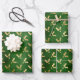 Elegant green gold foil mistletoe pattern festive wrapping paper sheet
