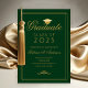 Send your family and friends an elegant college graduation announcement for any degree. This design template features a green background with fuax gold calligraphy, a thin double gold border and gold grad cap. Personalise with your graduation details. Designed by ©Susan Coffey.
