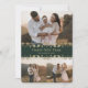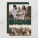 Elegant green and gold photo Happy New Year card featuring holly and berries on the front and falling snow at the back. Easily personalise this modern holiday card with your photos and text.