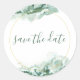 Elegant Green & Gold Ombre Marble Save the Date Classic Round Sticker