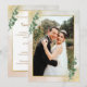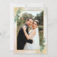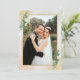 Make your special day unforgettable with this exquisite wedding invitation. Featuring a personalised photo on the front. This elegant design is framed by shimmering gold glitter and lush green eucalyptus leaves. A perfect blend of classic romance and contemporary style, this invitation sets a sophisticated tone for your entire wedding collection. Customise the back with all your event details.