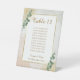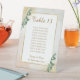 Make your special day unforgettable with this exquisite wedding table number pedestal sign. Featuring space for guest names. This elegant design is framed by shimmering gold glitter and lush green eucalyptus leaves. A perfect blend of classic romance and contemporary style, this table number pedestal sign sets a sophisticated tone for your entire wedding collection.