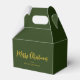 Surprise your holiday party guests with these Elegant Green Gold Script Christmas Personalised Favour Boxes. This simple and elegant design has the customisable greeting "Merry Christmas" in faux gold trendy hand script lettering on the middle front of box. The background is dark green and you can change to any colour. Personalised with family name or your custom text in simple print lettering.