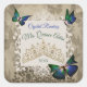 Edit your name and message on this vintage beige & green Quinceanera personalised sticker. Antique, decorative border and green butterflies Quinceanera label is versatile for green or teal theme colours. Butterflies and gemstone tiara can easily be resized and repositioned on your seal.