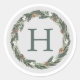 Elegant Green Grey Monogram Christmas Wreath Classic Round Sticker
