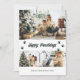 Custom green photo happy pawlidays cards featuring three photos and paw prints on the front and a green background with gold stars at the back. Easily personalise these elegant green photo Christmas cards with your images, a family name and the year. More colour options available. Easily personalise to any colour.