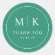 This Classic Round Sticker features a minimalist and modern design with a deep forest green background. The layout includes bold, white initials "M" and "K" separated by a vertical line at the top, followed by the phrase "THANK YOU" in clean, sans-serif typography. The overall style is elegant and sophisticated, conveying gratitude and formality, making it perfect for acknowledging special occasions or expressing appreciation. The customizable date placeholder adds versatility, allowing you to personalize your message effortlessly.