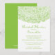 Beautiful elegant vintage antique lace bridal shower invitation featuring printed on lace in chartreuse green lace set on a stylish modern white background. Flip the invitation over to find a matching colored back for an extra special touch. Available in our shop in a large selection of modern & chic color choices your bride will love. Easy to personalize with your party information and guaranteed to make a perfect first impression.
