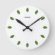 Modern green laurel leaves on white background Wall Clock. Text can be personalized.