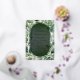 Elegant background lush light to dark green leaf frame paired with luxurious real silver foil to create a uniquely timeless design that provides a beautifully formal look to your momentous anniversary occasion.
