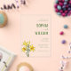 This acrylic invitation features a sophisticated and elegant design, perfect for weddings. The layout is vertical with a clean black background that highlights the vibrant lime green text and bright yellow lily illustrations on the lower left side. The typography combines classic serif fonts with a whimsical cursive ampersand, creating a balance of tradition and modernity. The overall mood is celebratory and formal, making it an ideal choice for couples looking to add a touch of refinement to their wedding invitations.