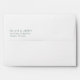 This wedding envelope features a minimalist design with centered text on a clean white background, creating an elegant and timeless look. The muted green hue of the serif font adds a subtle touch of sophistication without overwhelming the simplicity of the layout. Perfect for formal occasions, this design emphasizes readability and personalization, making it ideal for weddings or other significant life events. Its understated aesthetic ensures that your special moment is highlighted through clarity and grace.