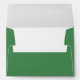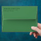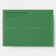 This wedding envelope features a minimalist design with centered text on a solid green background, creating an elegant and sophisticated look. The layout is clean and simple, emphasizing readability with evenly spaced lines of medium-weight sans-serif font in all capital letters. Perfect for couples who appreciate modern aesthetics, this design focuses solely on typography without any additional graphics or embellishments, making it ideal for formal invitations. Its uncluttered style conveys a sense of refinement and clarity, suitable for any contemporary wedding celebration.