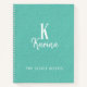 Simple unique modern mint green faux glitter sparkling monogrammed and name personalised recipe cookbook notebook.