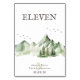This table number card is elegant and very useful helping guests know where to sit. Design of watercolor landscape painting of trees, flying birds and montains in the background. Calm and serene nature illustration with pine trees and silhuettes of flying birds. Add names of bride and groom and the wedding date.