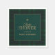 Add a touch of timeless charm to your celebration with these elegant green plaid baby shower napkins. Designed with a deep forest green and navy tartan border, gold lettering, and a classic rocking horse icon, they perfectly match the coordinating invitation design. Ideal for winter or holiday baby showers, these napkins bring a cozy, sophisticated feel to your party table. Personalize with the guest of honor’s name for a refined finishing touch.