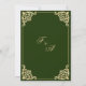 Elegant Nikah Ceremony Islamic Muslim Wedding Invitation. A dark green colour card with a gold baroque vintage border in the corner. There are two luxury script fonts on the front and back card. You can personalise the names, date and address details to make this invite unique for you. You can add text on the back card if needed. Contact designer for any product changes.