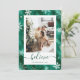 Elegant faux green foil Christmas card featuring snowflakes. Easily personalise this holiday card with your photo and text.