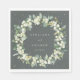 Elegant, dark grey green wedding napkins featuring hand painted snowberries and eucalyptus arranged into a beautiful botanical wreath. All text is fully editable so you can easily change the message, alter the font style/colour/size, or delete/move text. Coordinating items available.