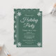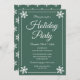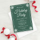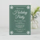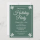 Festive holiday party invitation design features elegant "Holiday Party" script text and celebration details that can be fully personalized, framed by a stylish snowflake framed border. This two sided design features a snowflake pattern on the reverse side. The pine green background color can be modified via Customize.