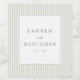 This elegant wedding wine label features a minimalist design with a central white square framed by subtle vertical stripes in soft green shades. The layout is clean and balanced, showcasing the names "Lauren" and "Benjamin" in classic serif typography, complemented by a cursive "and," creating a refined and modern look. Perfect for celebrating your special day, this label combines sophistication with simplicity, making it an ideal choice for those who appreciate understated elegance.