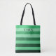 Elegant Green Striped Pattern Name Tote Bag.