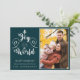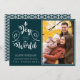 Elegant Green Typography Photo Joy To The World Holiday Card