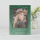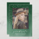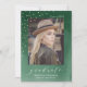 Modern and chic photo graduation announcement featuring your graduate's senior photo with an elegant script font and faux gold foil confetti against a green watercolor background. Personalise the watercolor graduation announcement with your graduate's class year, name, and school.