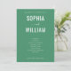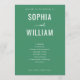 This wedding program features a simple, elegant design with a deep green background and crisp white text. The layout is centered and balanced, showcasing the names in bold serif font with a cursive "and" for added elegance. The ceremony details are listed in a clean sans-serif typeface, ensuring clarity and readability. The minimalist aesthetic focuses on typography, conveying a formal yet inviting mood perfect for a sophisticated celebration.