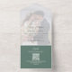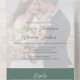 Announce your big day with this green elegant wedding invitation featuring a modern photo template and classic typography script overlay. Designed in a simple seal-and-send format, this invitation is both stylish and budget-friendly. The trifold style offers ample space for a QR code to your online wedding website, RSVP guest response reply, and details information. Enhanced with botanical earthy tones, this invitation perfectly balances elegance and functionality for the modern couple.