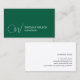 Elegant Green White Bold Monogram Consultant Business Card