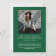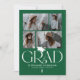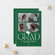Announce your graduate’s milestone in timeless, sophisticated style with this elegant green and white graduation announcement card. Featuring a trendy green background, the design highlights the word “GRAD” in a modern serif typeface, accented with a stylish graduation cap icon above the “R.” The flowing tail of the “R” transitions into a sleek tassel that connects the graduate’s name, school, and class year, creating a cohesive and high-end finish.
