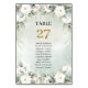 Delight guests for your wedding party with this charming design for table number with guests names with these adorable Watercolor hand painted white flowers roses peonies mixed sage eucalyptus greenery and combined modern script lettering. Show them that they your special attention and Give them an unforgettable party moments.