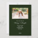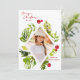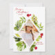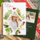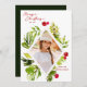 This elegant holiday card features a stunning diamond-shaped photo frame, encircled by vibrant watercolor botanical illustrations of lush greenery and festive red berries. Set against a deep forest green background, the design exudes a modern and sophisticated charm.