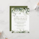 Elegant lush watercolor greenery botanicals in shades of olive, sage, and celery green over a white background. The back of the card is olive green. *** - NOTE - *** If you need help with this invitation or for custom requests you need my help with, do not place this merchandise in your cart. Instead, email me your request at shutterbug600@yahoo.com. I am an independant designer that lists my work for sale through Zazzle; however, they fulfil all aspects of the manufacturing and shipping of said designs. I do not have access to your account and can't see what you have done. Answers to your enquiries can be found at https://www.zazzle.com/about/ask Click the link so that questions about your order or shipping can be answered by Zazzle's wonderful Customer Care team members.