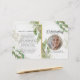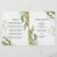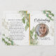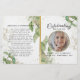 Customise this modern, elegant funeral program with your own photo and text to create a special tribute to your Beloved. An 'In Loving Memory' program featuring Floral Foliage botanical and gold accent memorial program. On the front cover is a photo of your loved one, their name, dates, the memorial venue, and the date of the event. On the inside is an obituary and order of service, and on the back is a thank you note and the venue of the