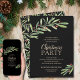 Greenery and berries on black accent your party information in chic lettering on these Christmas holiday party invitations. MATCHING items in our store.