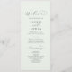 This elegant greenery coordinate wedding program is perfect for a simple wedding. The minimalist grey and mint green design features fancy romantic typography with modern glam style. Customisable in any colour. Keep the design minimal and classy, as is, or personalise it by adding your own graphics and artwork. Include the name of the bride and groom, the wedding date and location, thank you message, order of service, bridal party and an optional "in loving memory" memorial.