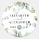 Elegant greenery eucalyptus names and wedding date classic round sticker
