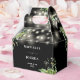 This elegant greenery botanical floral string lights wedding favour box can be personalised with your information in chic typography on a black background. Designed by Thisisnotme©