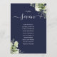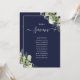 These elegant navy blue botanical greenery leaves wedding table numbers can be personalised with your guests' seating plan set in chic typography. The cards are printed on the front and back (double-sided). Designed by Thisisnotme©