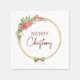 Merry Christmas festive design from red poinsettia blossom, golden leaves, green twigs, bows and christmas balls.