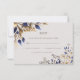 Elegant Greenery Leaf Blue Gold Wedding RSVP Card