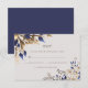 An elegant blue gold greenery leaves wedding RSVP card. Personalise this with your own details to make it your own. See the collection below for more matching items.