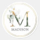 ELEGANT Greenery Leaves Gold Monogram Letter M Classic Round Sticker