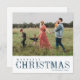 Elegant Greenery Lettering Christmas Blue | Photo Holiday Card